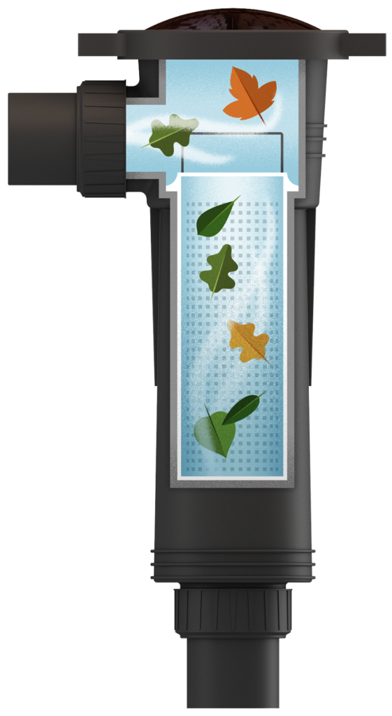 In traditional in-line leaf baskets, debris builds up quicky and clogs up the flow. The extra pressure due to impeded water movement makes your pump work harder to do the same job.