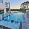Whether looking from above the water, or peering through the large embedded side window below, the river remains an ever-present backdrop on a warm summer evening.