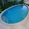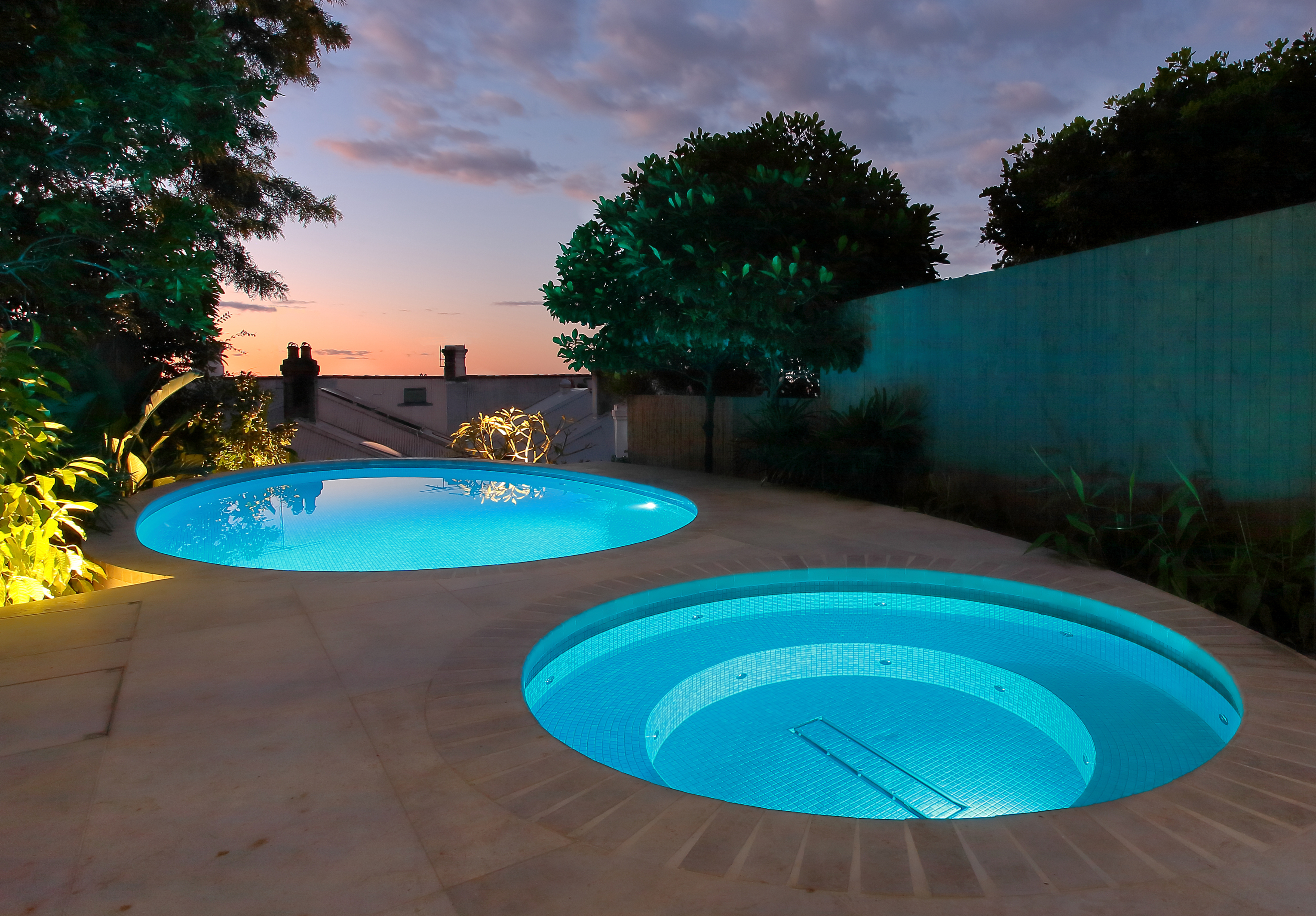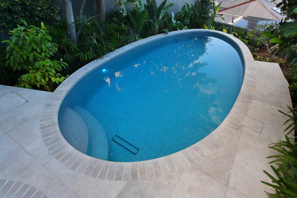 The pebble-shaped pool and spa are fully tiled and kept separated by seamlessly laid limestone paving, which provides a luxurious finish to this quiet oasis in suburbia.