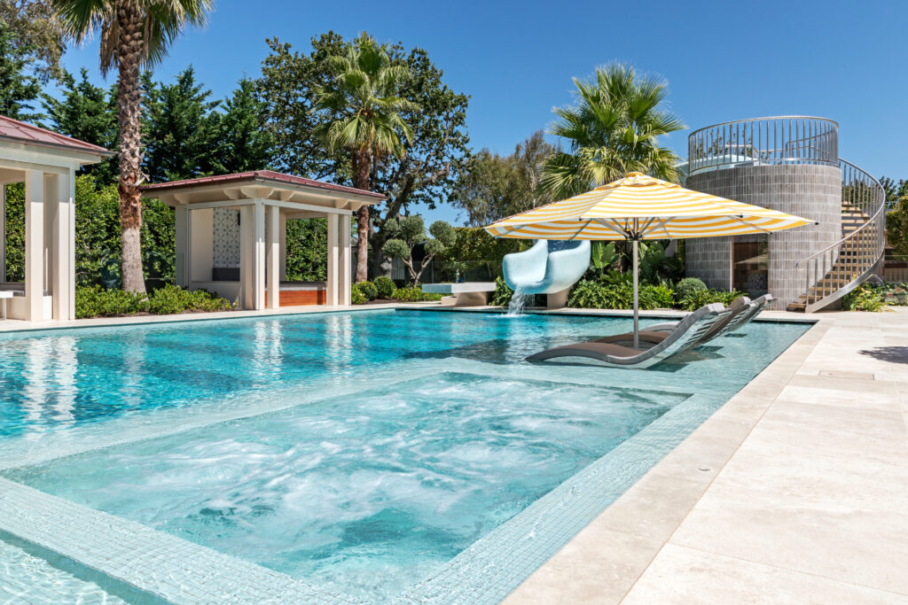 At the heart of the stunning transformation is a whopping 20 x 9m pool: a massive undertaking and the feature piece for this recreation area. The various depths give areas of contrast and cater to people of all ages. Swim to your heart’s content, slide on in with childlike abandon, or lounge around in the shallows — the choice is yours.